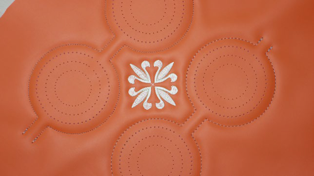1、實現繡花、縫紉、沖孔于一體,花型任意設計,輕松實現沖、繡、縫任意搭配的復雜工藝。