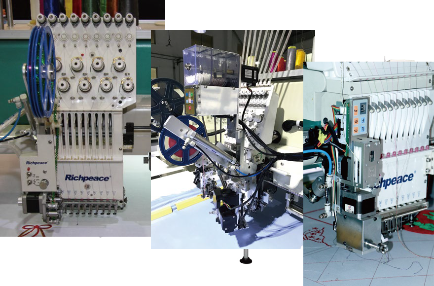 1、 每整組機頭具有4種功能:平繡+鏈式/毛巾繡+簡易繩繡。