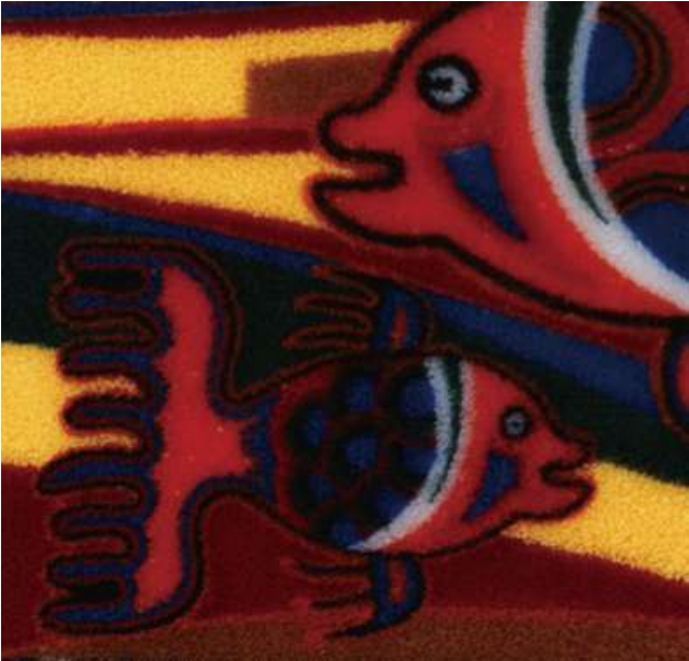 5、植絨成品線絨平滑、均勻。繡線穿透織物緊勾固定,經(jīng)過背膠處理