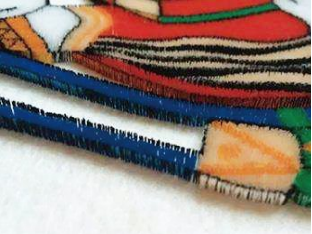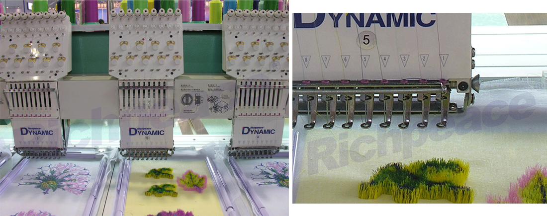 3、根據(jù)花版要求,預(yù)留不同的切線長(zhǎng)度,創(chuàng)造出立體三維造型,繡線根根直挺,圖案清晰凸顯。